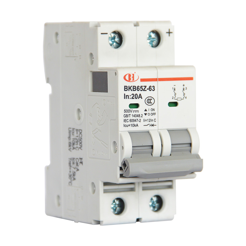 BKB65Z-63系列直流小型断路器适用于额定直流电压至1000V,额定电流1~63A,额定绝缘电压1000V的直流系统线路中。用来对建筑及类似场所的直流系统线路设施、电气设备进行过电流保护,也可以用于不频繁的通断操作。本产品符合GB/T 14048.2、IEC 60947-2标准。